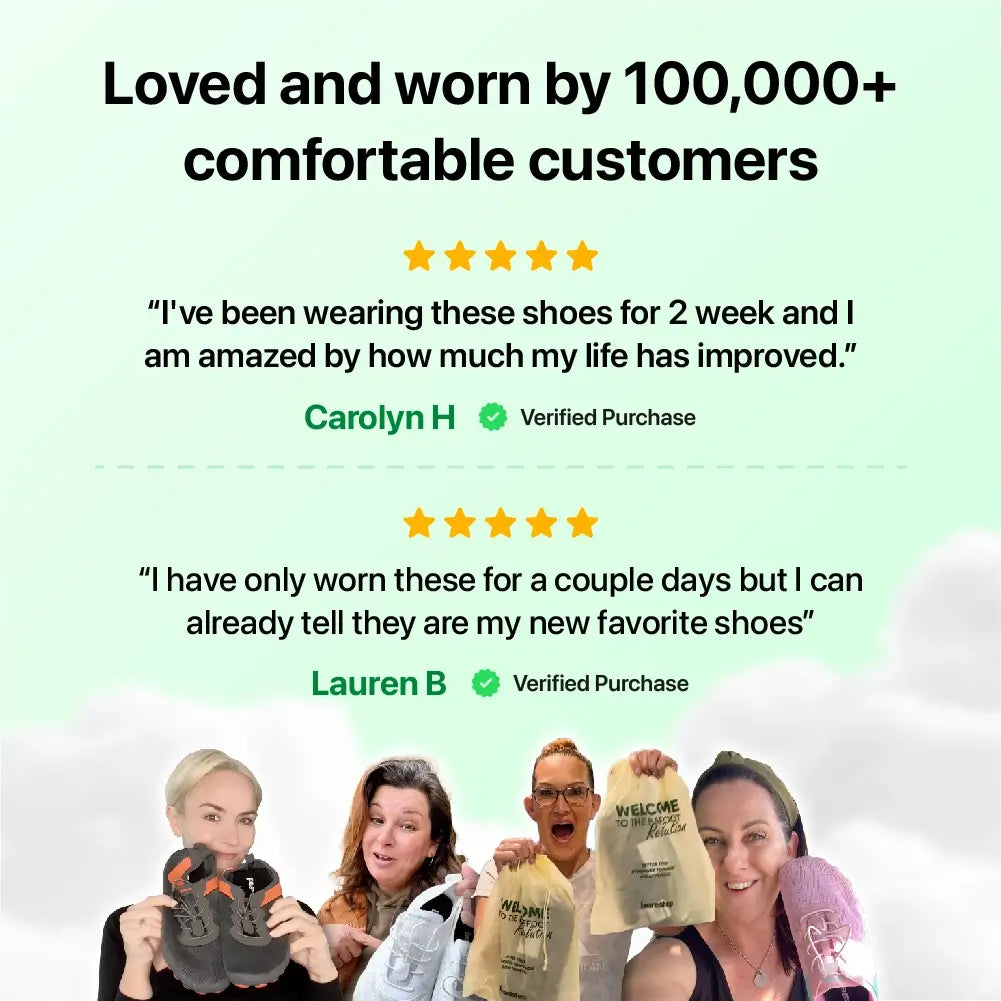 Verified buyer“Super light and comfy. Pain reduced so much I’ll stop taking my foot medicine.”