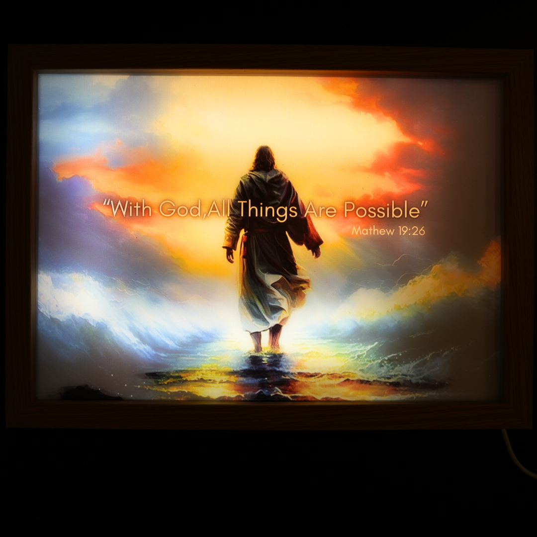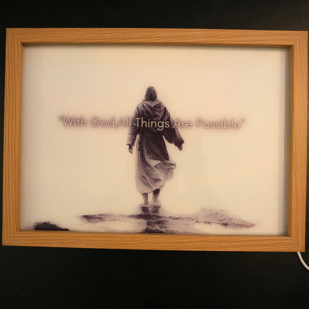 Each frame is more than a light — it’s a silent prayer. Designed to gently illuminate your sacred space and bring peace through the presence of Jesus Christ. Whether lit or resting, it reminds you that He is near.
